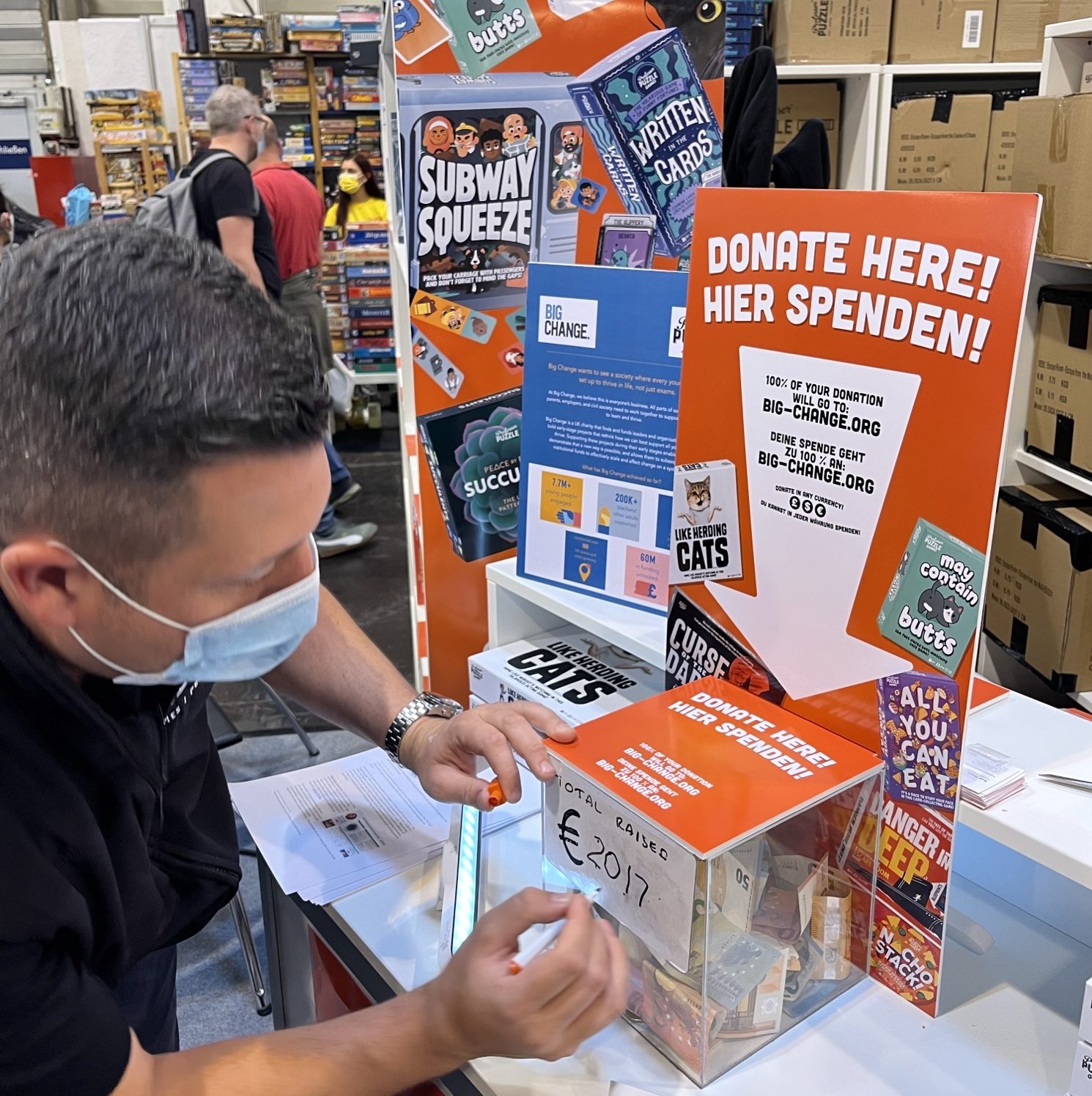 The team had an amazing few days at Essen Spiel in Germany over the weekend. We played games, showcased products, ate lots of good food … oh, and raised over €12,000 for Big Change Charity – smashing our €10,000 target!
