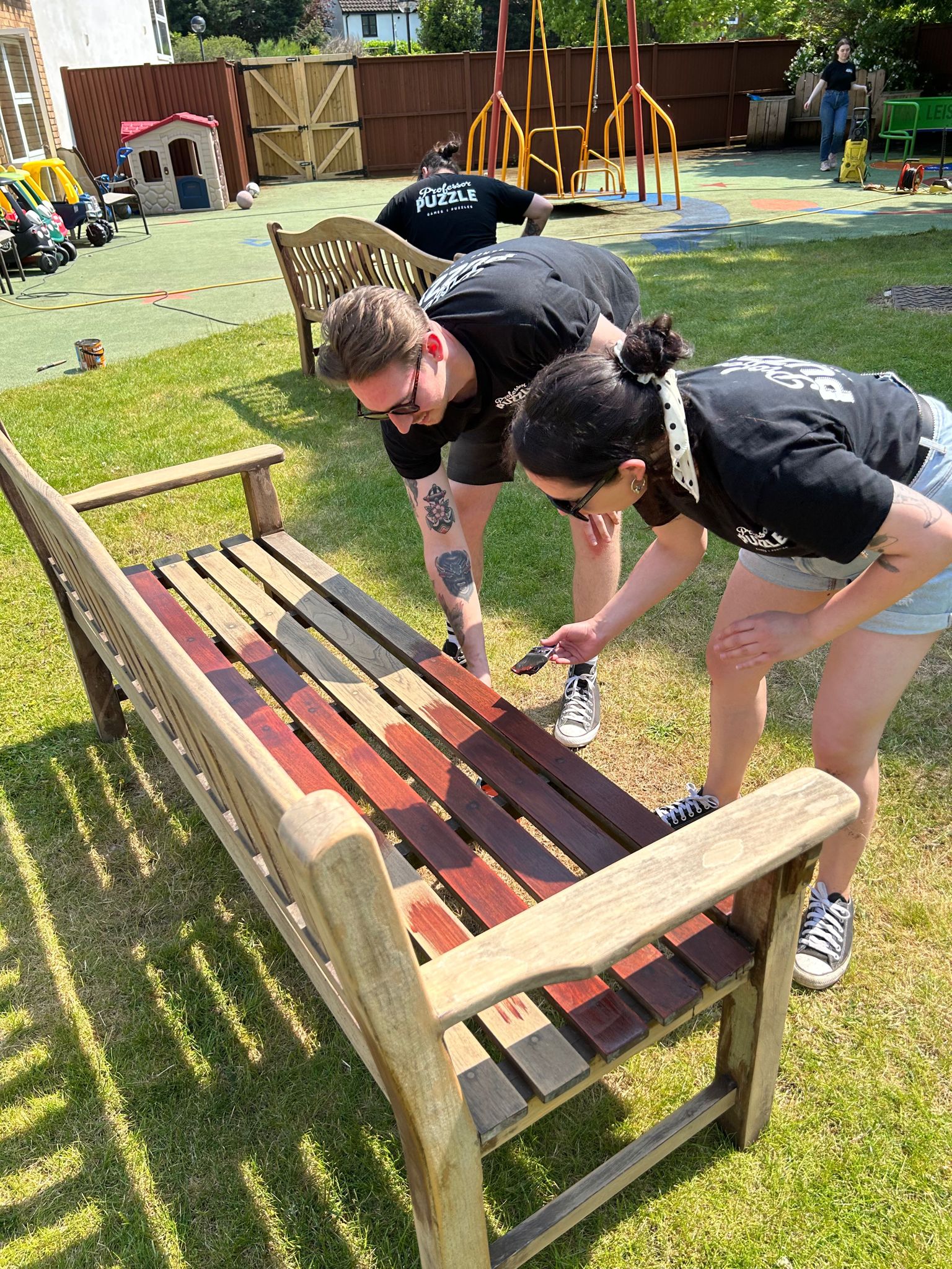 Then the team got to work! They took turns completing different tasks such as weeding, jet washing and sanding down benches that needed re-painting.